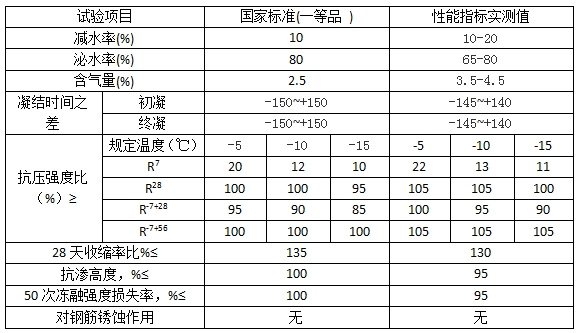 一、摻防凍劑砼技術性能: